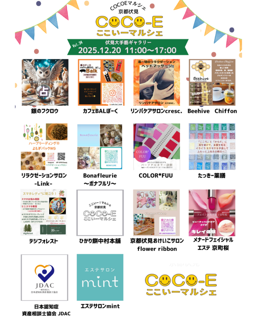 2025年12月20日(土)、伏見大手筋商店街の大手筋ギャラリーにて、年内最後となるCOCOEマルシェを開催します。