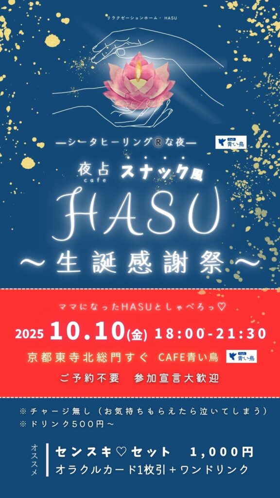 10月10日(金) 18:00〜21:30、京都駅近くのcafe青い鳥にてASAYOさんがカウンターに立たれるイベントが開催されます。